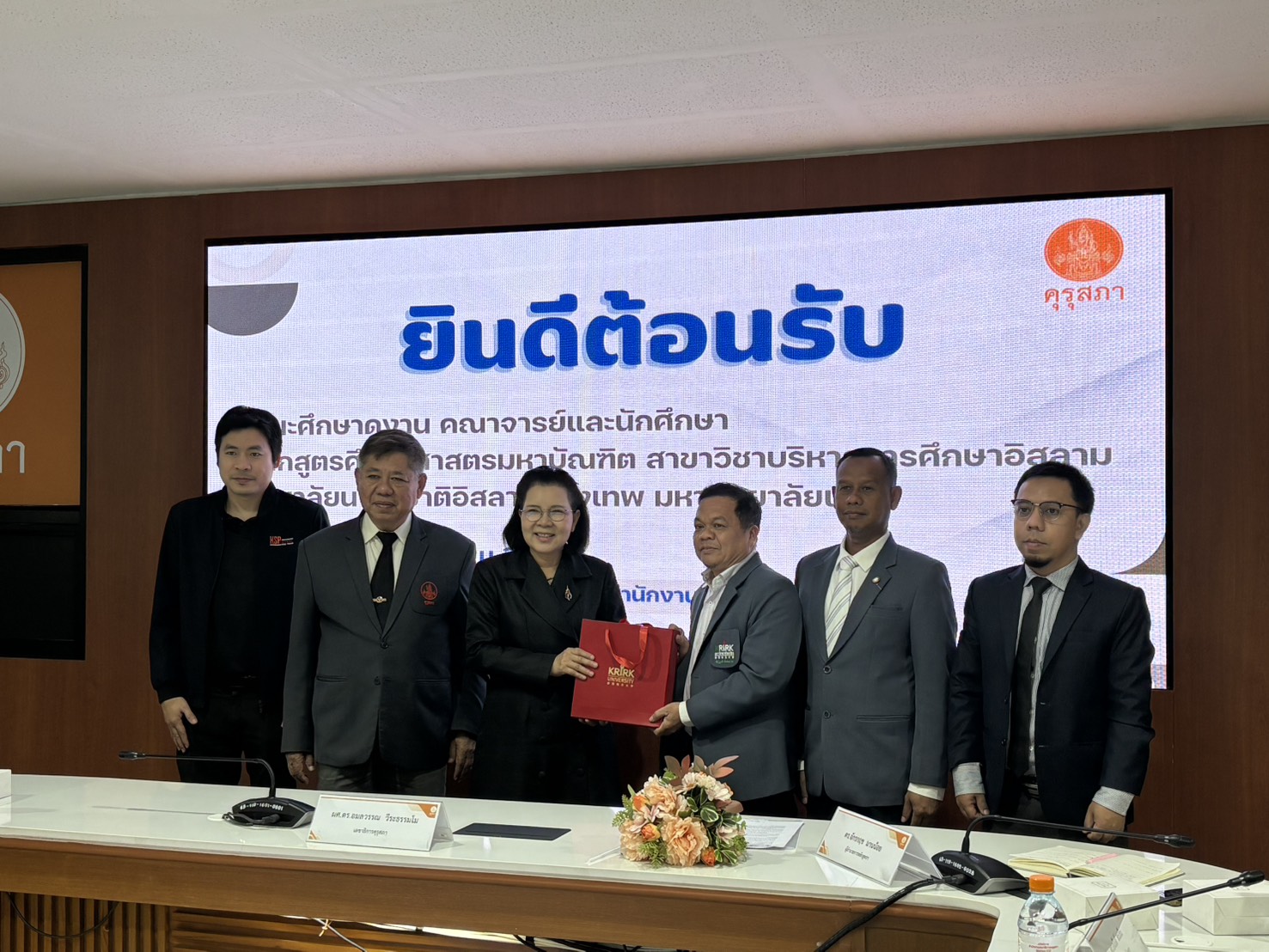 เมื่อวันอังคารที่ 6 มกราคม 2569 เวลา 09.00 น. หลักสูตรศึกษาศาสตรมหาบัณฑิต สาขาวิชาการบริหารการศึกษาอิสลาม (รุ่นที่ 2) วิทยาลัยนานาชาติอิสลามกรุงเทพ มหาวิทยาลัยเกริก นำโดย อาจารย์กัษมารา เอี่ยมพัชรวุฒิ ผู้ช่วยคณบดี ดร.จักรกฤช มานน้อย ผู้อำนวยการหลักสูตรฯ ดร.อนันต์ สะเล็ม ผู้อำนวยการหลักสูตรบริหารธุรกิจมหาบัณฑิต สาขาวิชาบริหารธุรกิจอิสลาม และ อาจารย์ ดร.อรรณพ แดงโกเมน อาจารย์ประจำบัณฑิตศึกษา ได้นำคณะนักศึกษาเข้าศึกษาดูงานและแลกเปลี่ยนเรียนรู้ทางวิชาการ ณ สำนักงานเลขาธิการคุรุสภา